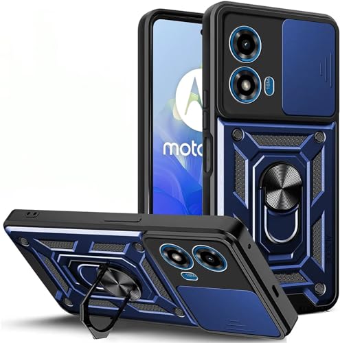 PIXFAB for Motorola Moto E14 / G04 / G04s / G24 Case, Shockproof Case with Camera Lens Protection, Protective Ring Armour Phone Cover [Kickstand], Dual Layer Shock Absorption Phone Case - Blue
