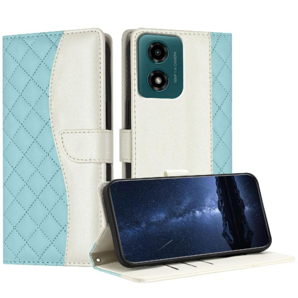 (Light blue) Flip Case for Motorola Moto G04 Light Color Card Slots Holder Wrist Strap Wallet Protection Magnetic