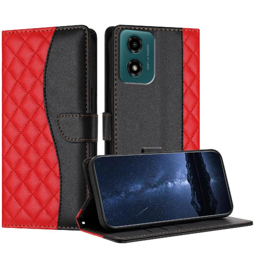 (Red) Flip Case for Motorola Moto G04 Card Slots Magnetic Closure Flip Cover Precise Cutouts