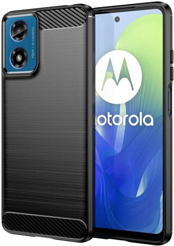 PIXFAB for Motorola Moto E14 / G04 / Moto G24 [Slim Fit] Shockproof Brushed Carbon Fibre [Protective Case] Cover, Gel Rubber Phone Case for Moto G04 / Moto G24 - Black