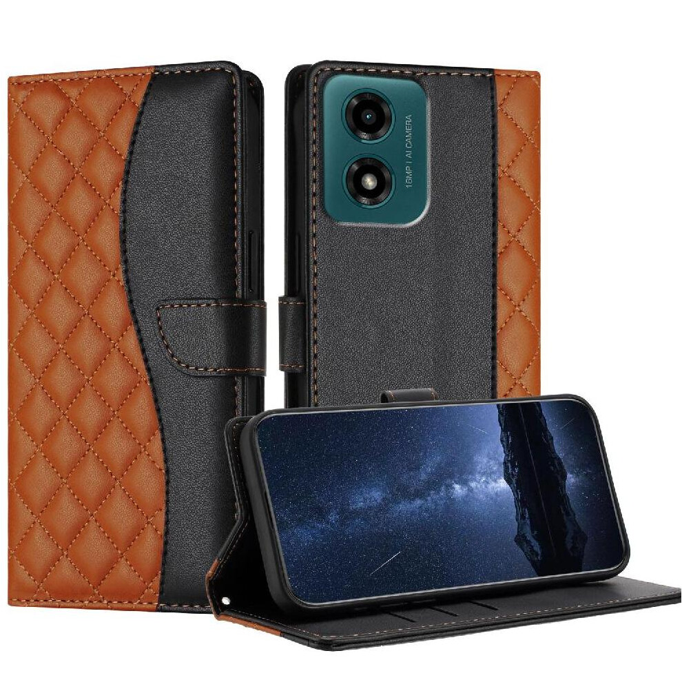 (Brown) Compatible Case for Motorola Moto G04 High Quality Kickstand Function Accurate Incision Unique