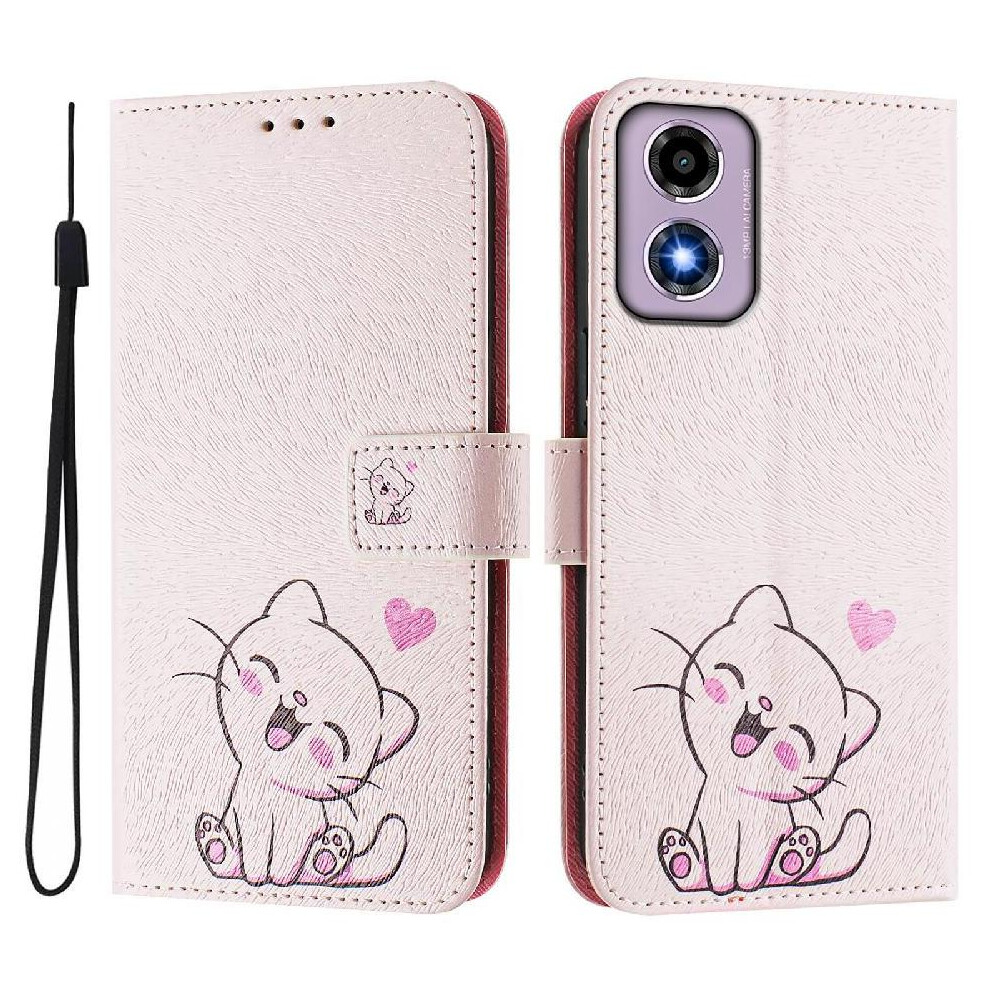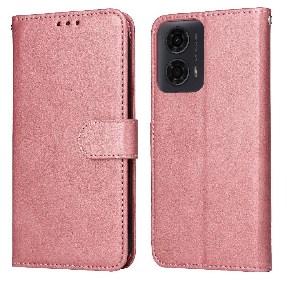(Pink) Flip Case for Motorola Moto G04 Flip Protective Mobile Phone Anti-fall Premium Pu Leather with Card Slots with Kickstand Function