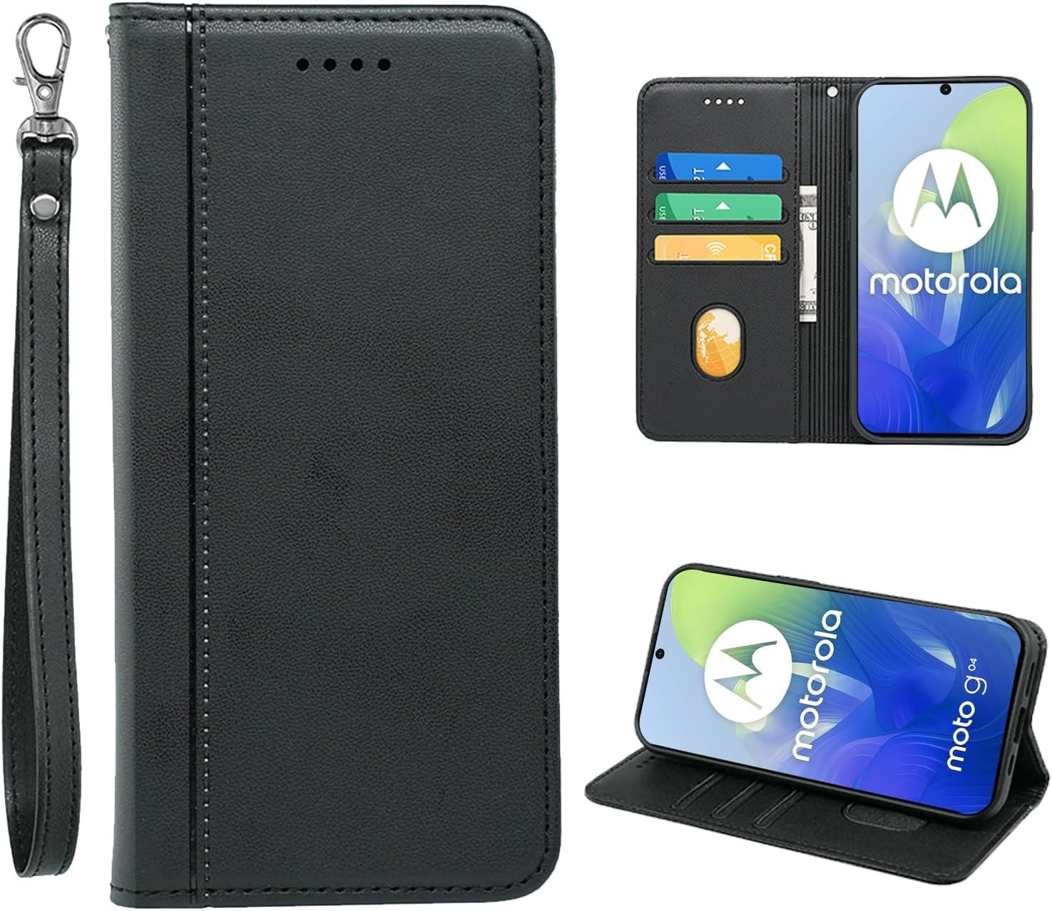 LYZXMY Mobile Phone Case for Motorola Moto G04 4G/G24 4G(6.56"), Premium PU Wall