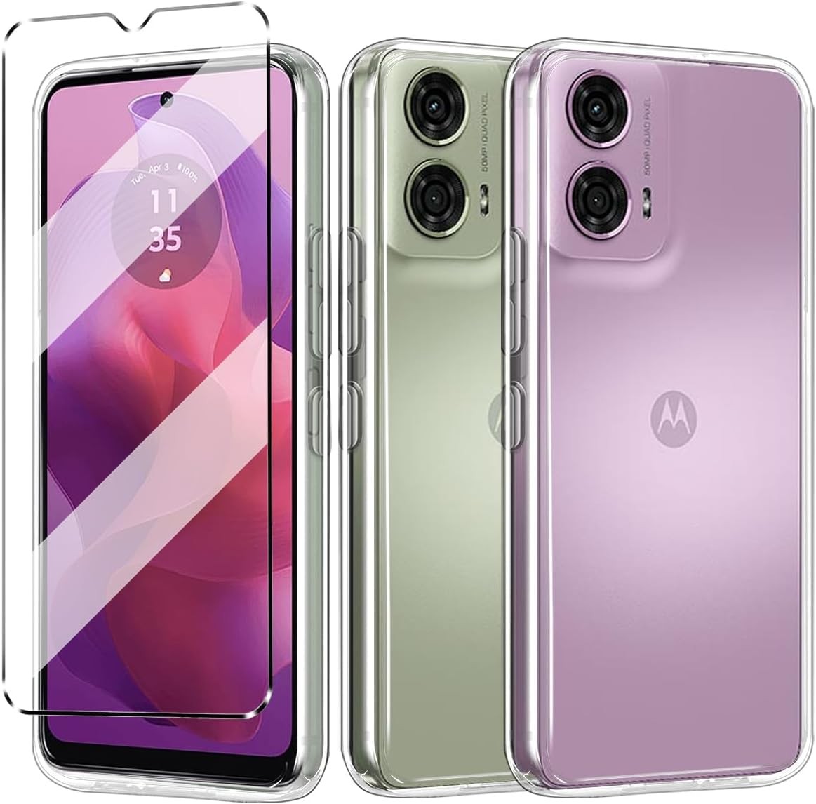 PIXFAB for Motorola Moto E14 / G04 / G24 Case, [Ultra Slim] Scratch Resistant TPU Gel Rubber Soft Skin Silicone [Protective Case] Cover and [1 Pack] Tempered Glass Screen Protector - Clear