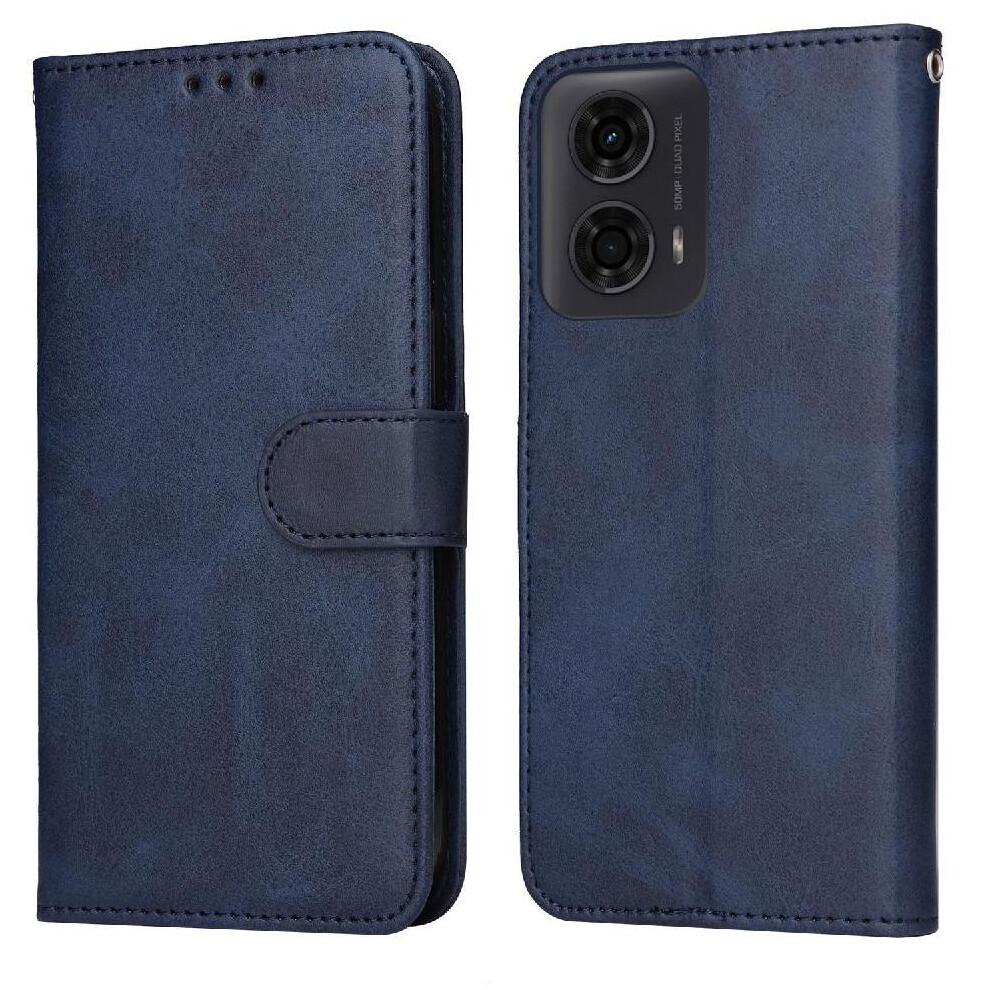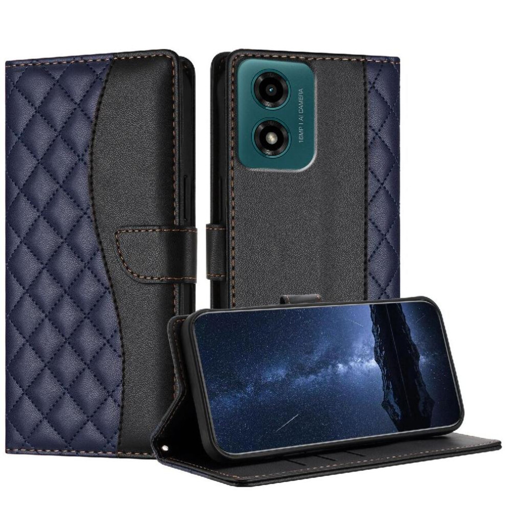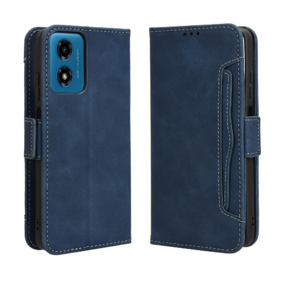 (Blue) Flip Case for Motorola Moto G04 Flip Protective Mobile Phone Anti-fall Premium Pu Leather with Card Slots with Kickstand Function