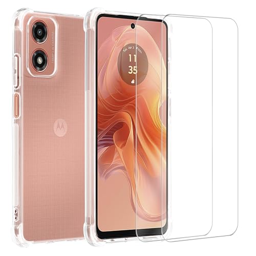 PIXFAB for Motorola E14 / G04 / Moto G24 Clear Case, Shockproof [Ultra Slim] Scratch Resistant Gel Rubber Silicone [Protective Case] Gradient Phone Cover + 2X Tempered Glass