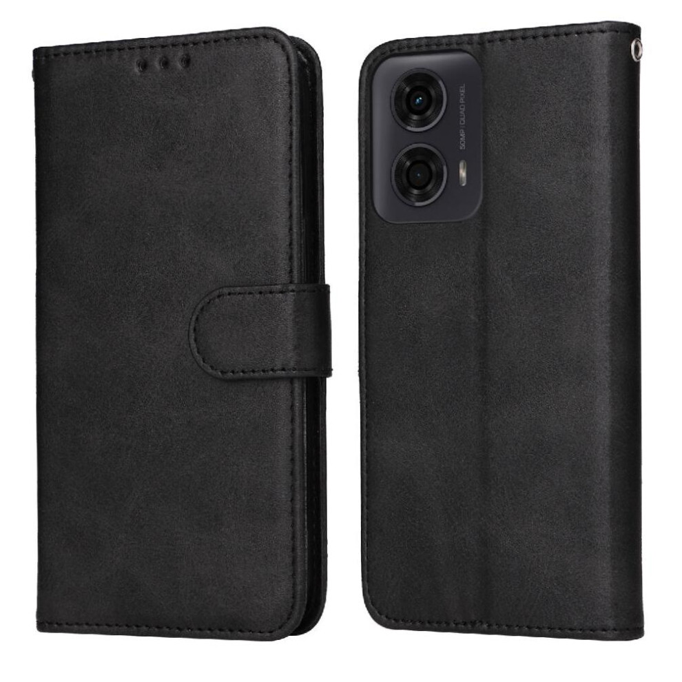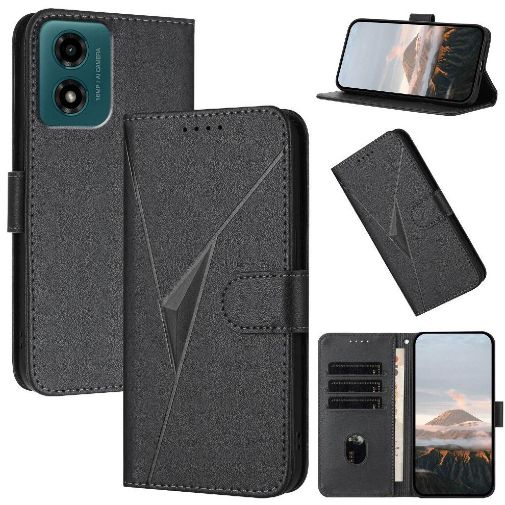 (Black) Flip Case for Motorola Moto G04 Flip Protective Mobile Phone Anti-fall Premium Pu Leather with Card Slots with Kickstand Function