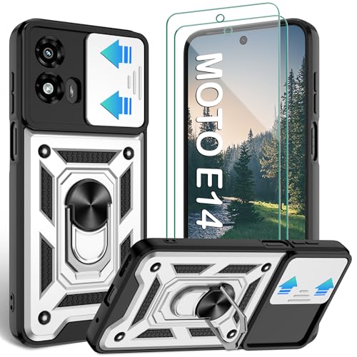 Jshru for Motorola E14 Phone Case with Screen Protector | Camera Protection Cover | Military Grade Shockproof Cover Fit Moto G24 | Moto G04 | Ring Kickstand Case for Motorola Moto E14,Silver