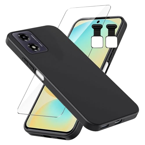 LYZXMY Case for Motorola Moto E14 4G / Moto G04 4G / Moto G24 4G with 1 x Tempered Film Glass Screen Protector - Black Cover Soft Flexible Bumper Silicone TPU Shell for Motorola Moto E14 4G (6.56")