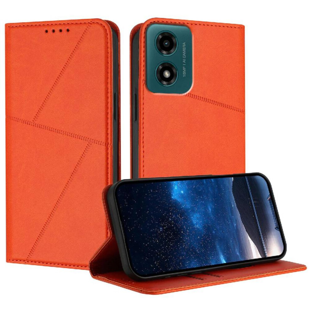 (Orange) Case for Motorola Moto G04 Shockproof Cover with Card Slots and Kickstand Anti-fingerprint Matte Texture