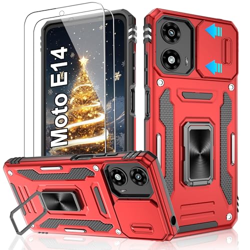 Jshru for Motorola E14 Phone Case with Screen Protector-Camera Protective Cover | Ring Stand Moto E14 Case for Men and Women | Shockproof Bumper Phone Cover for Motorola Moto E14 | G04 | G24,Red