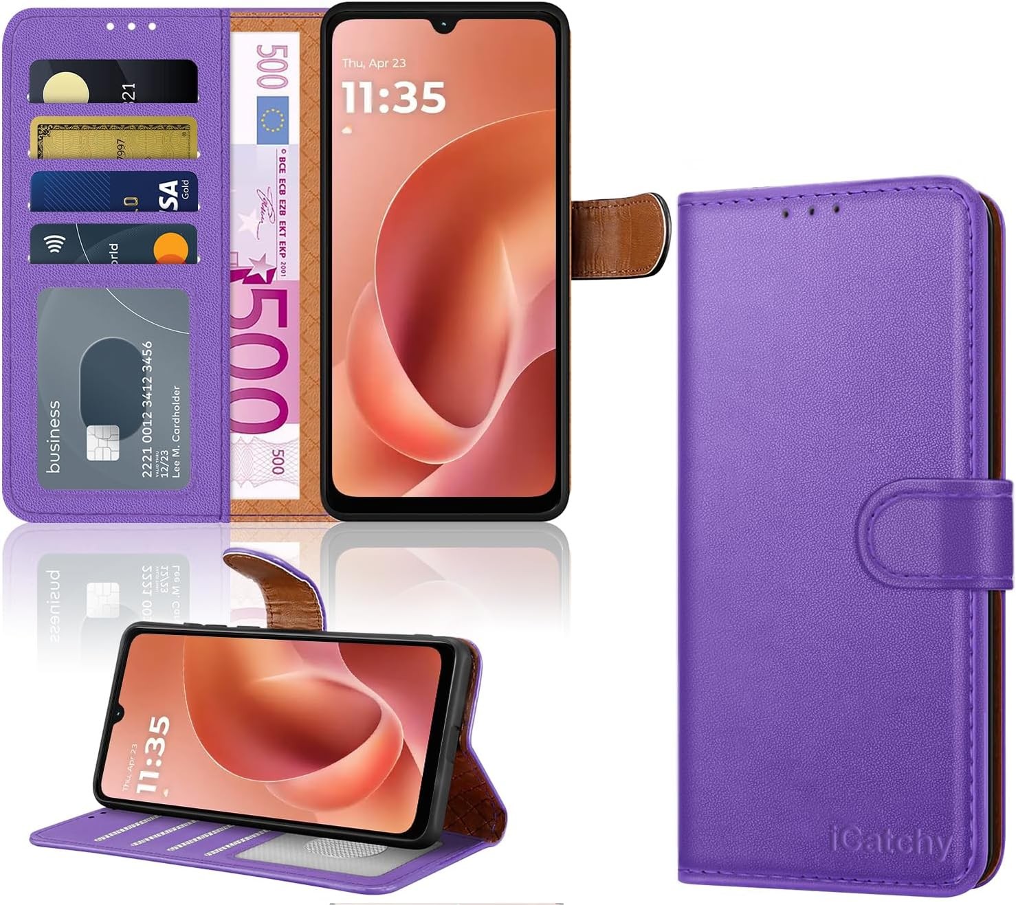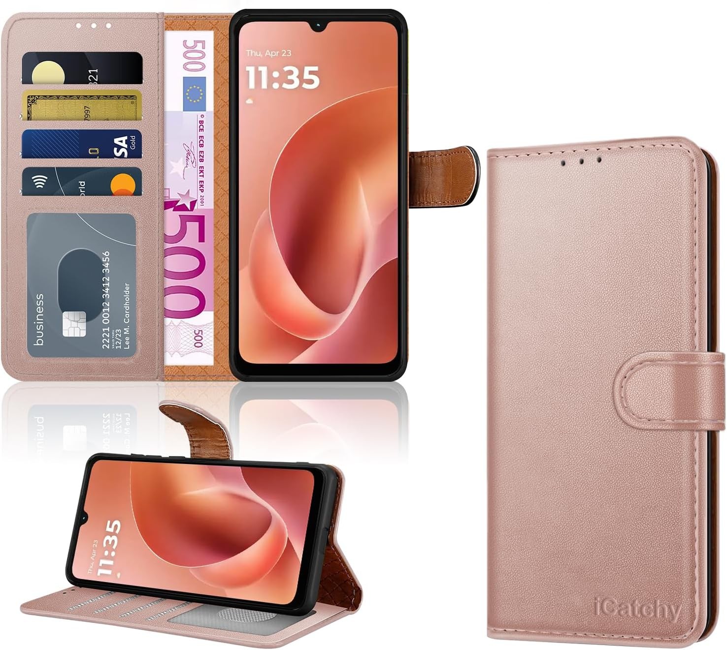 iCatchy Case for Motorola G06 / G06 Power with 4 Card Slots Leather Wallet Flip