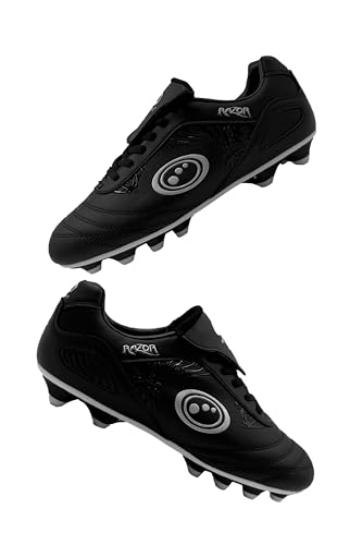 Optimum Senior Silver Razor Lace Up Football Boots - Moulded Stud Outsole, Durable Performance Cleats for Stability & Comfort -Black, Size 8