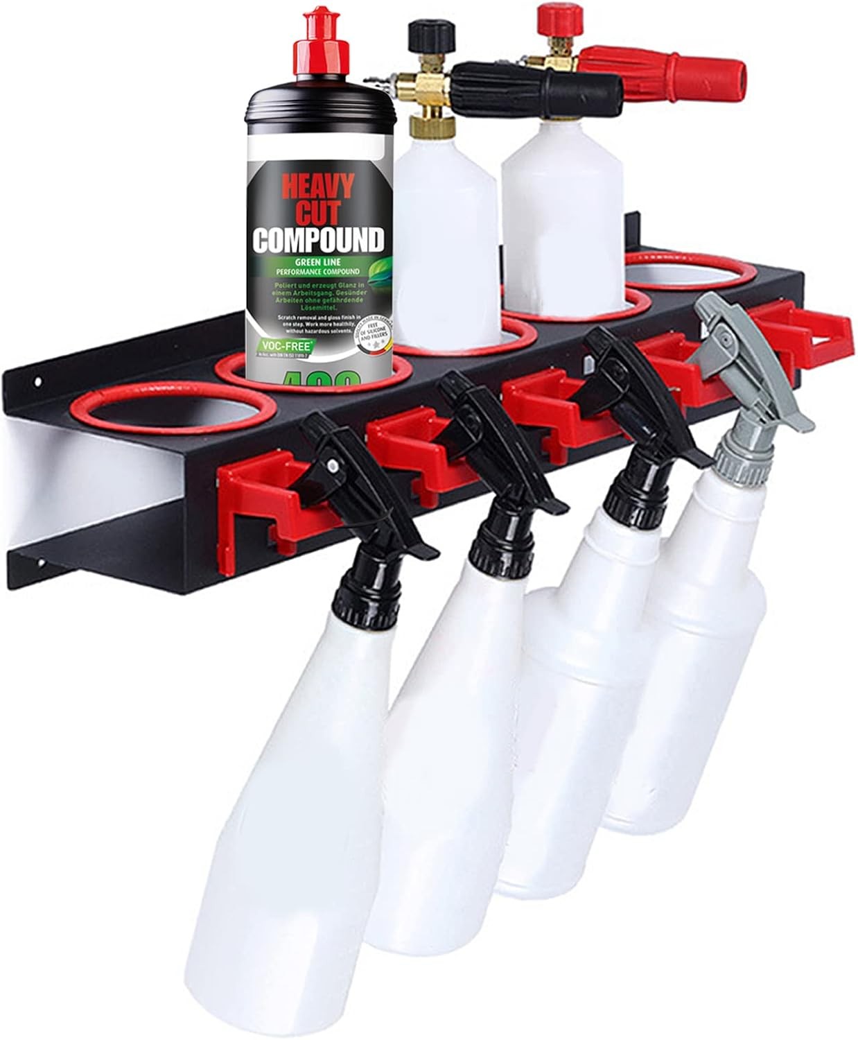 Heavy-Duty Wall Mount Spray Bottle Holder for Car Detailing,Adjustable 5-Hook H