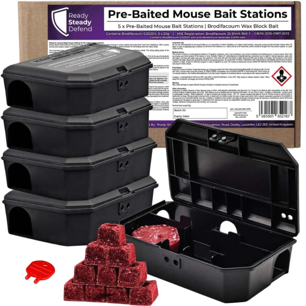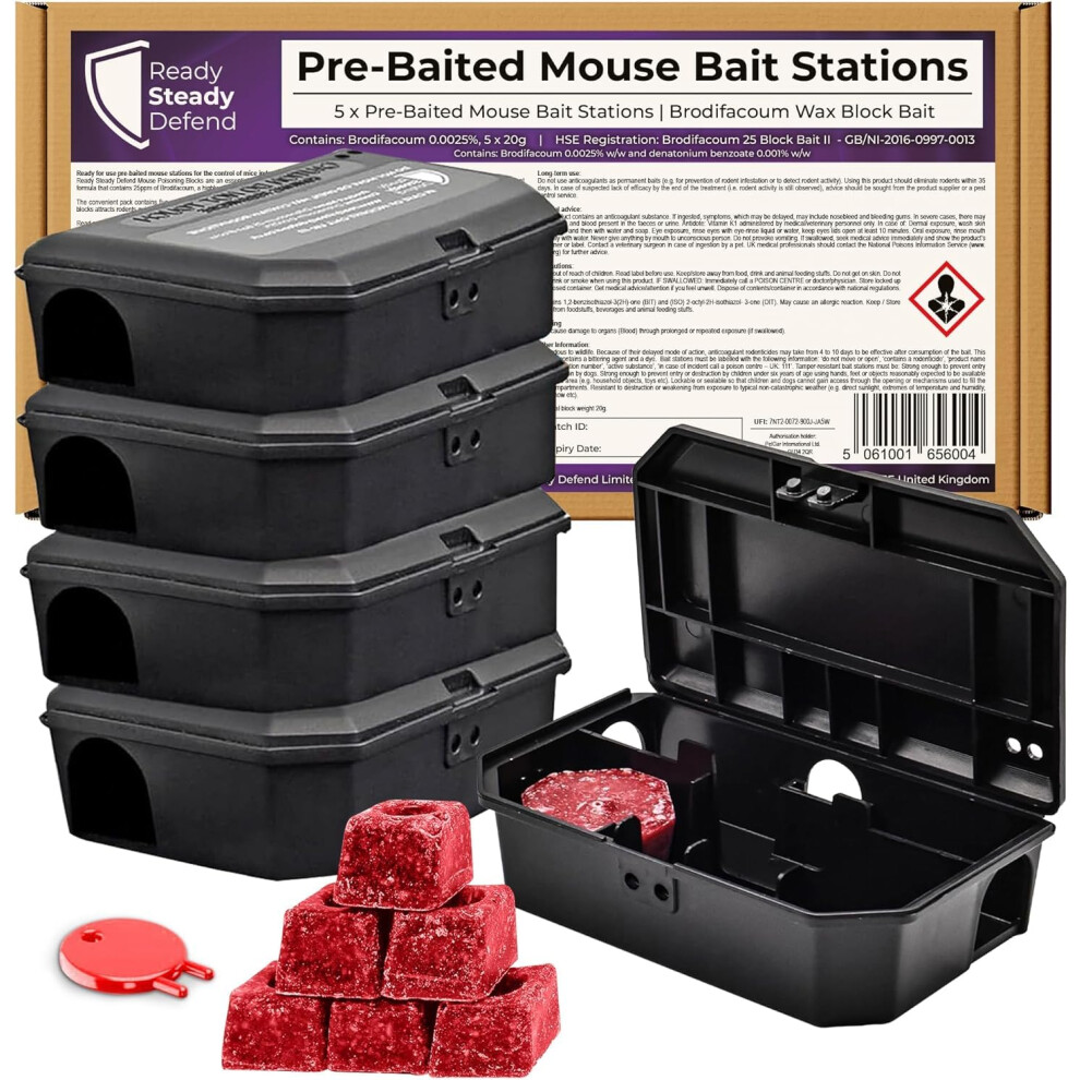 Pre Baited Mouse Boxes - 5 Pack for Effective Mouse Box Traps, Ideal Mouse Trap and Mouse Traps for Indoors Solution, Quick Setup and Ready to Use -
