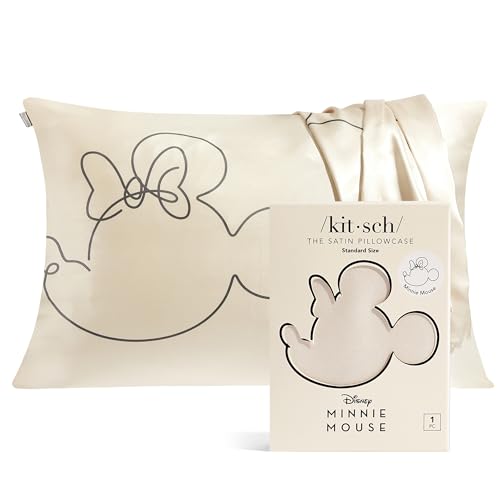 Mickey/Minnie x Kitsch Satin Pillowcase with Zipper - Softer Than Silk, Cooling Pillow Cases Covers | Standard Size (Mrs. Mouse, 1 Pack)