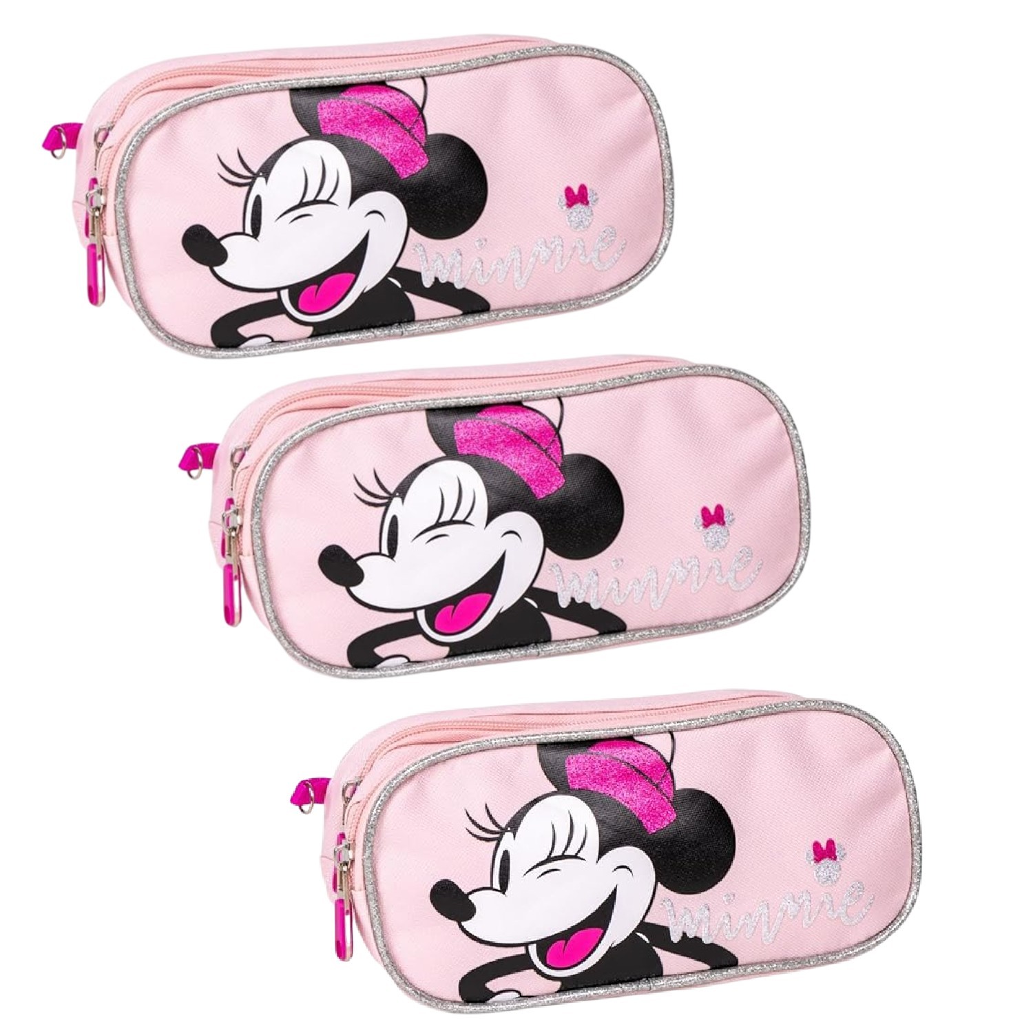Minnie Mouse 2 Compartment School Pencil Cases for Kids - 3 Pack