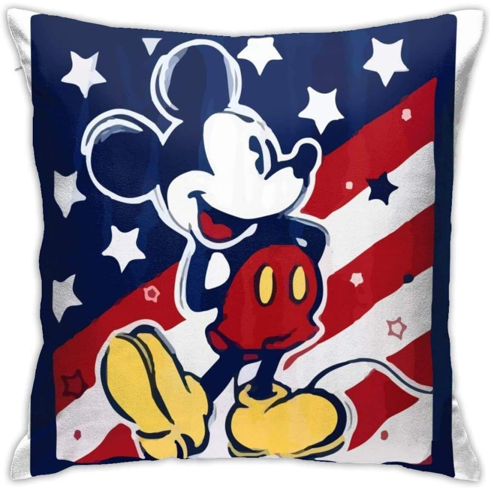 Soft Decorative Throw Pillow Cases Mickey Mouse American Flag Square Pillowcase Comfy Cushion Cover Luxury Pillow Cover