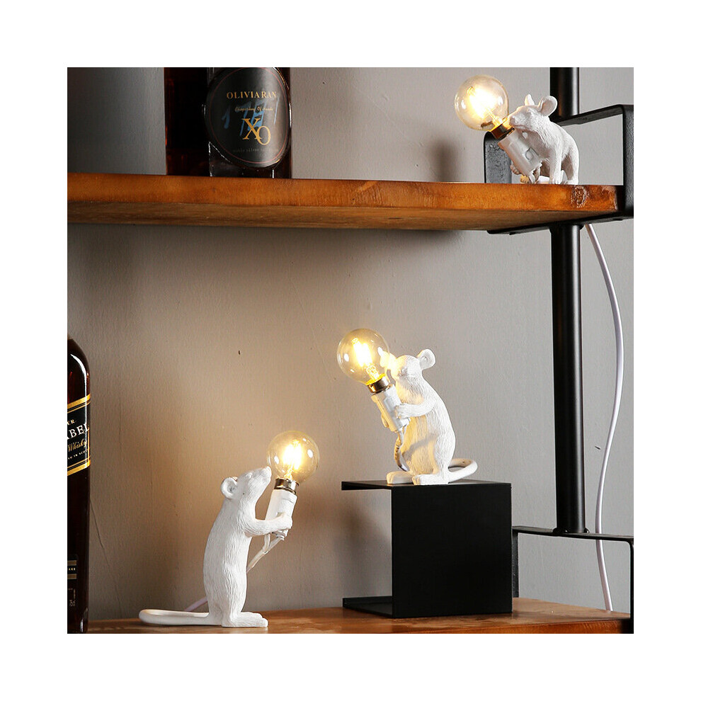 (White-Standing-UK) Mouse Table Lamp Light Bedside Resin Rat Lamp Home Office Desk Party Gift Decor