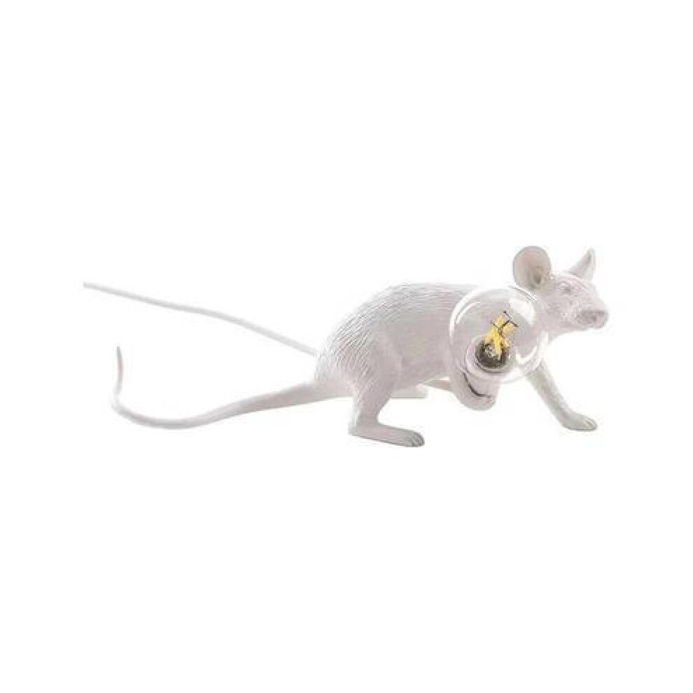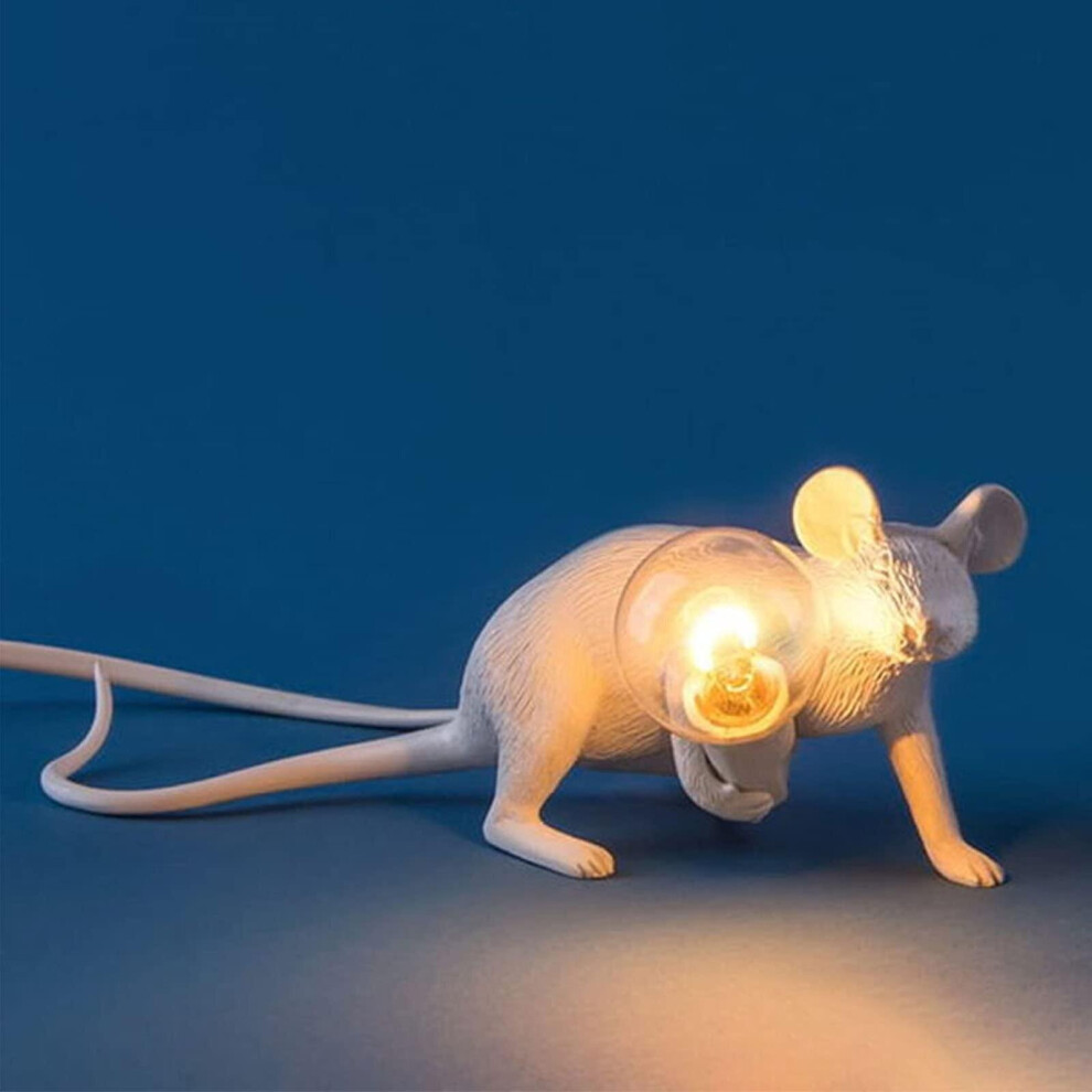 (White-Crawl-UK) Mouse Table Lamp Light Bedside Resin Rat Lamp Home Office Desk Party Gift Decor