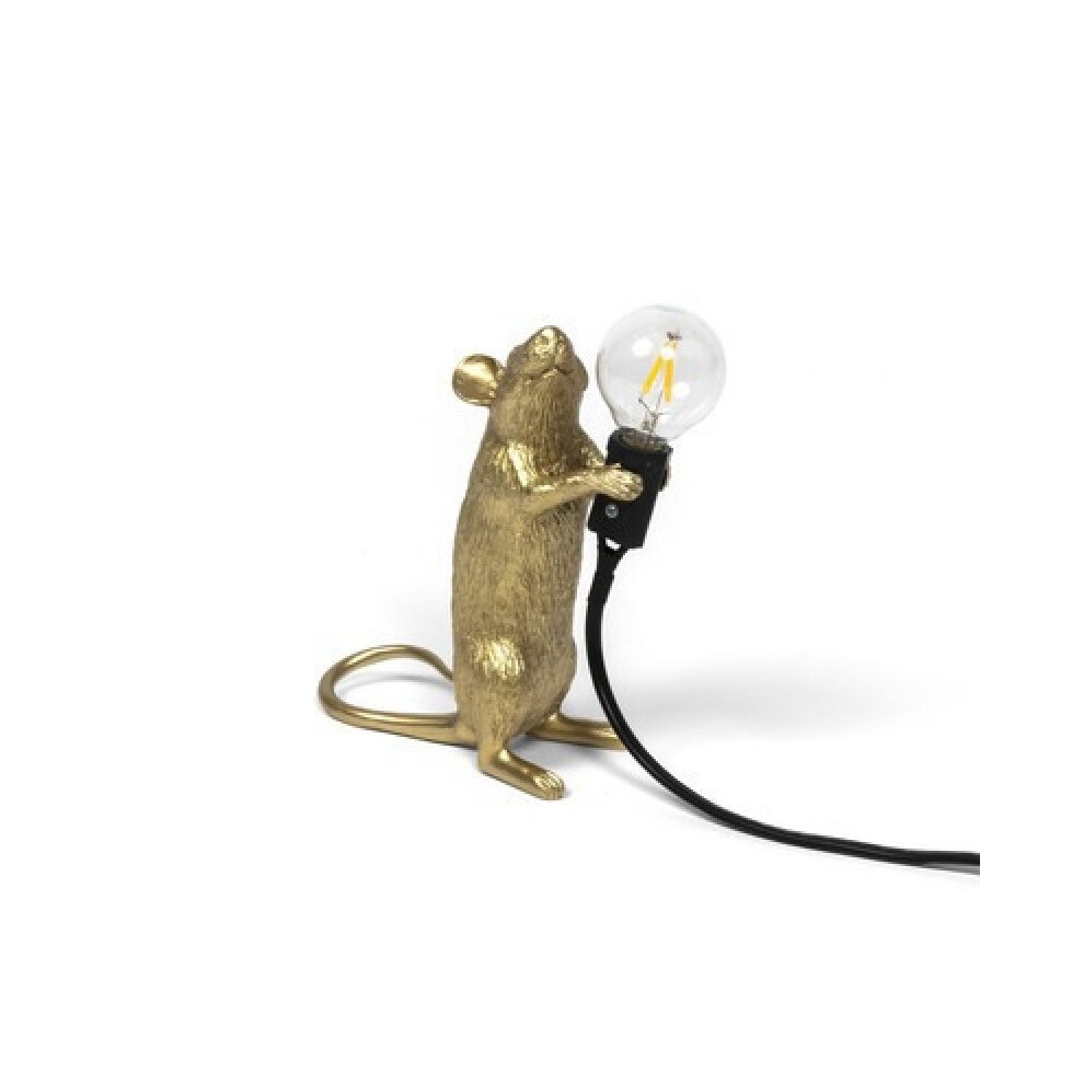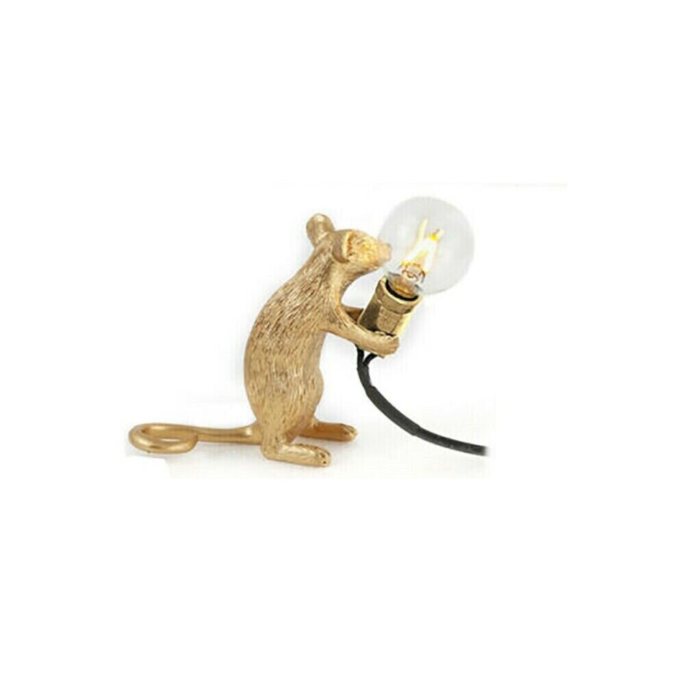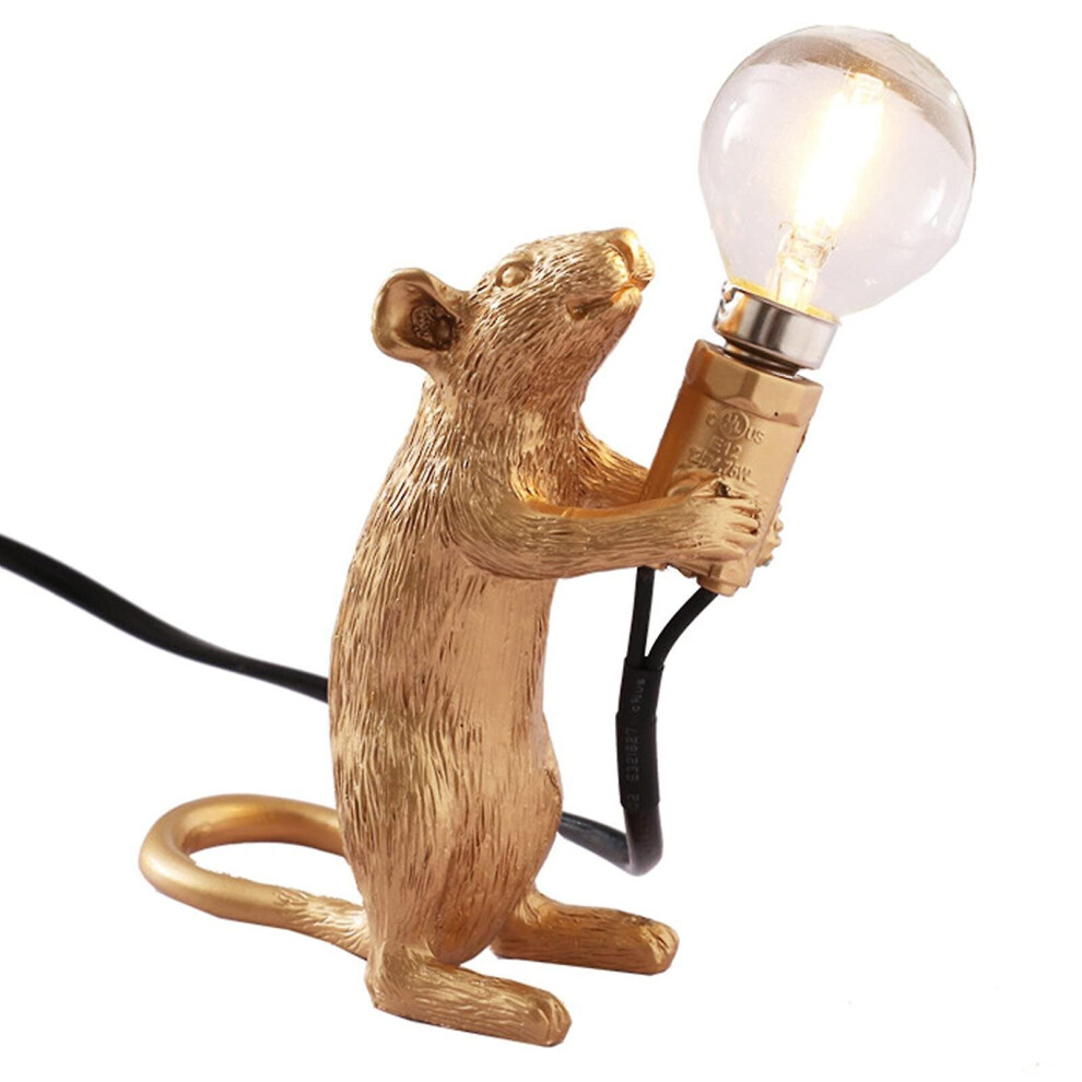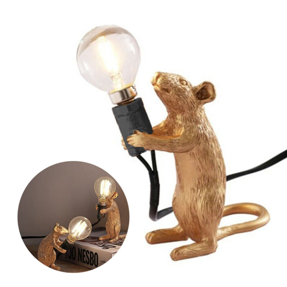 (Gold-Standing-UK) Mouse Table Lamp Light Bedside Resin Rat Lamp Home Office Desk Party Gift Decor