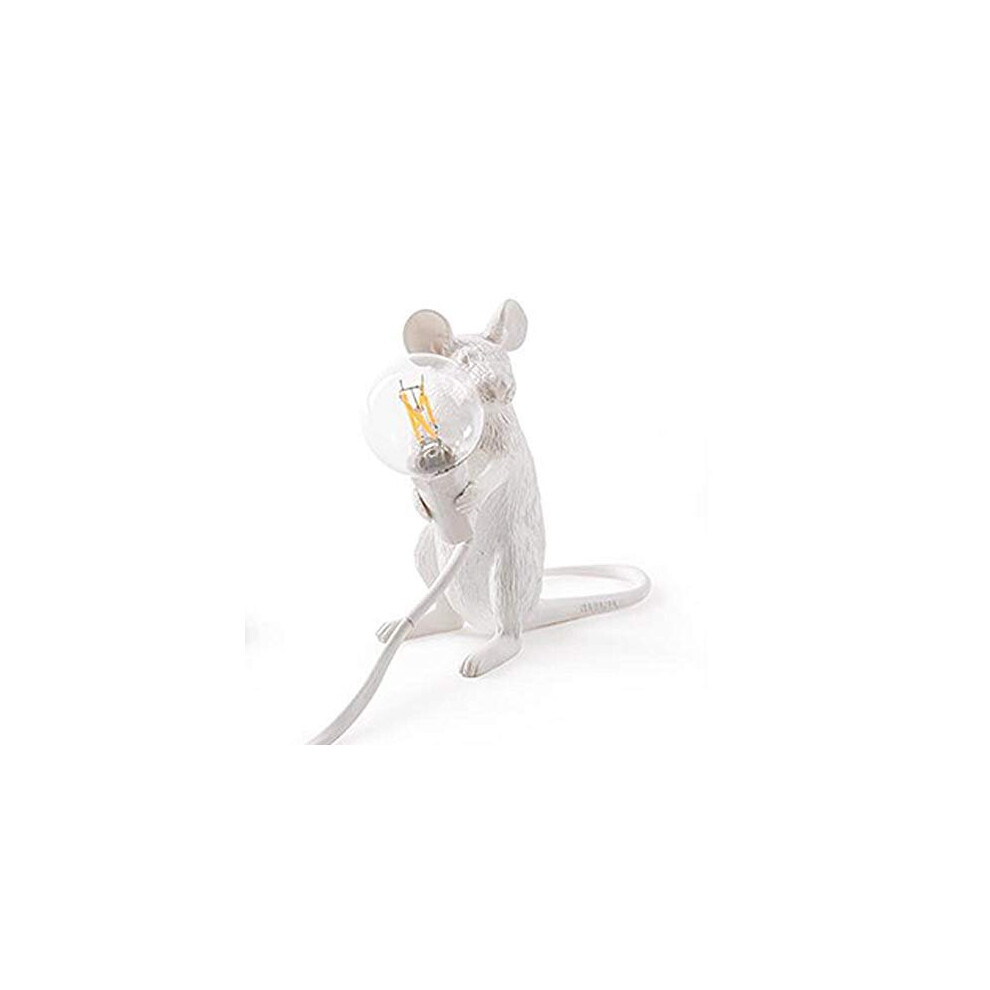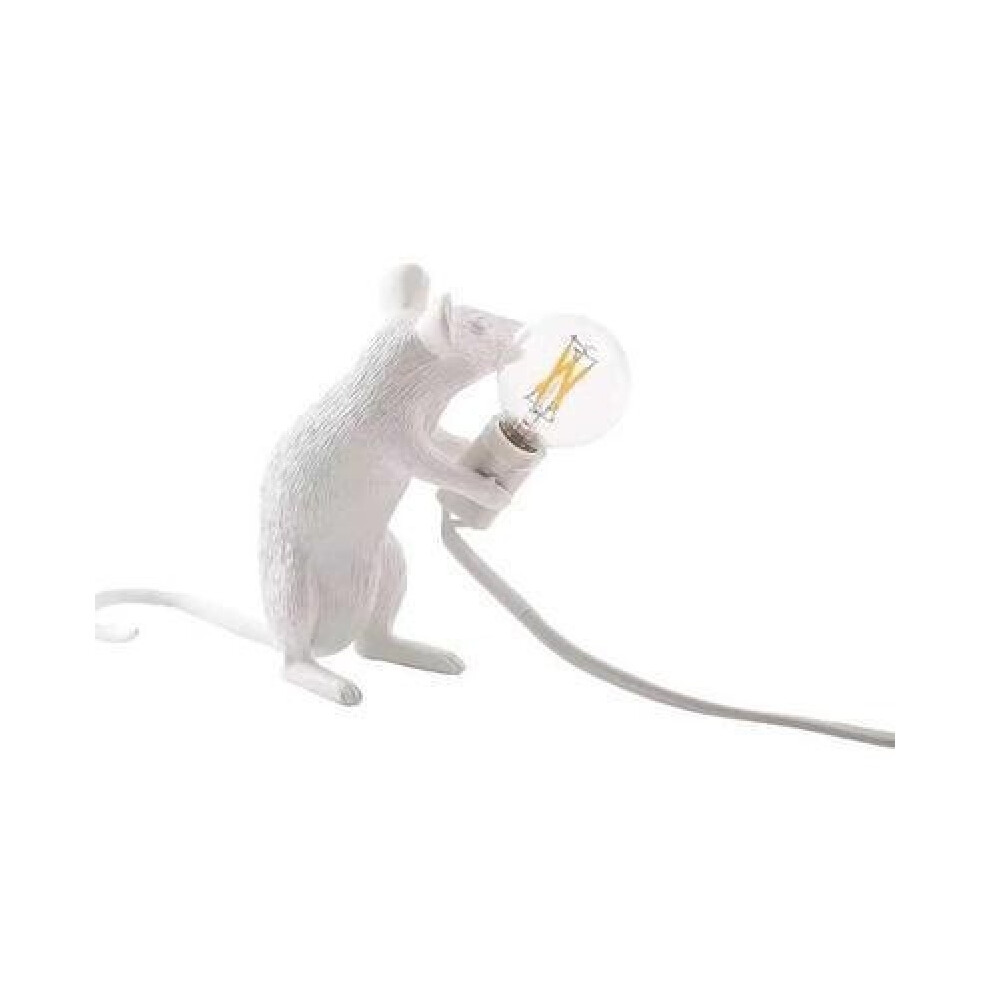 (White-Sitting) Modern Resin Mouse Table Lamp Night Light Bedside Lamp Bedroom Decoration Gift