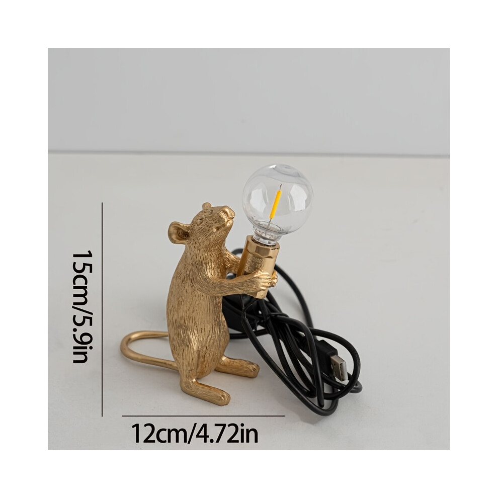 (Gold, Sitting) Plug Modern Resin Mouse Table Lamp White Golden Rat Bedside Light Room Decor