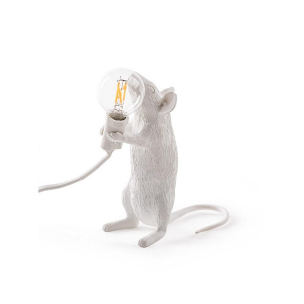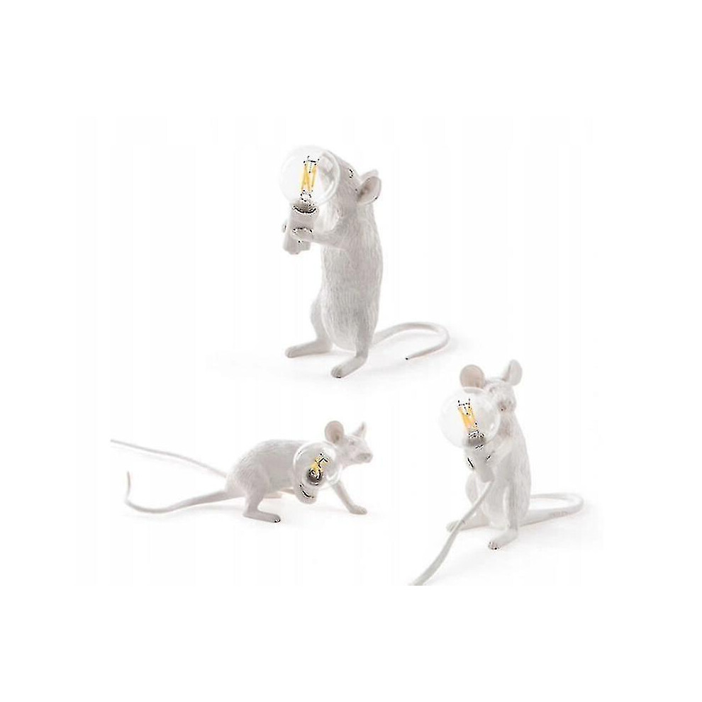 (White-Standing) Modern Resin Mouse Table Lamp Night Light Bedside Lamp Bedroom Decoration Gift