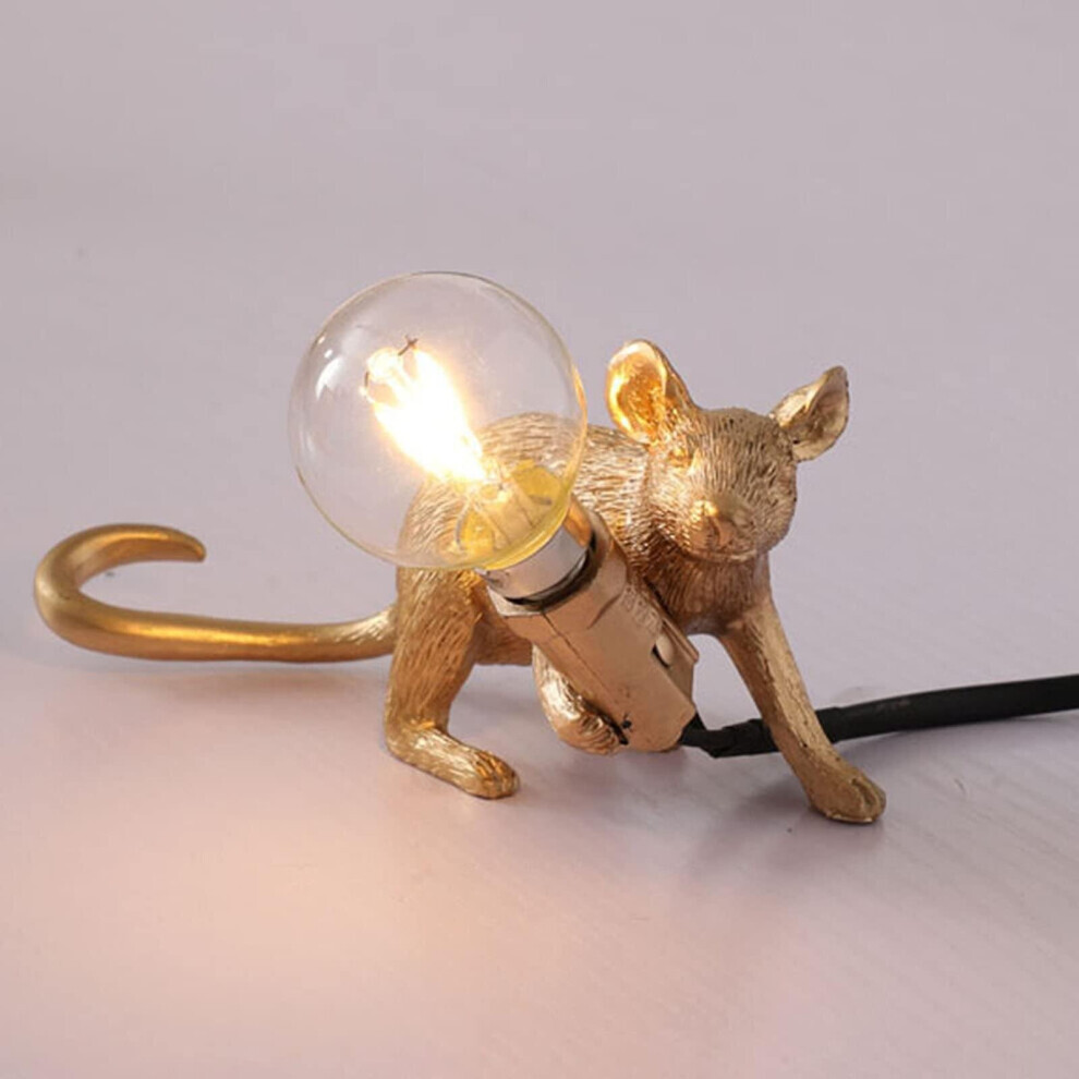 (Gold-Crawl-UK) Mouse Table Lamp Light Bedside Resin Rat Lamp Home Office Desk Party Gift Decor