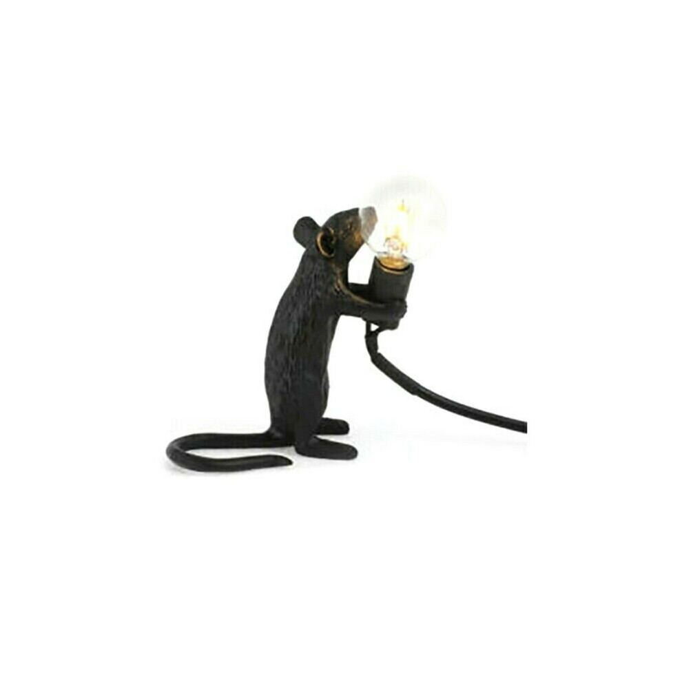 (Black-Standing-UK) Mouse Table Lamp Light Bedside Resin Rat Lamp Home Office Desk Party Gift Decor