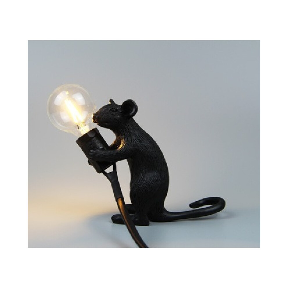 (Black-Sitting) Modern Resin Mouse Table Lamp Night Light Bedside Lamp Bedroom Decoration Gift