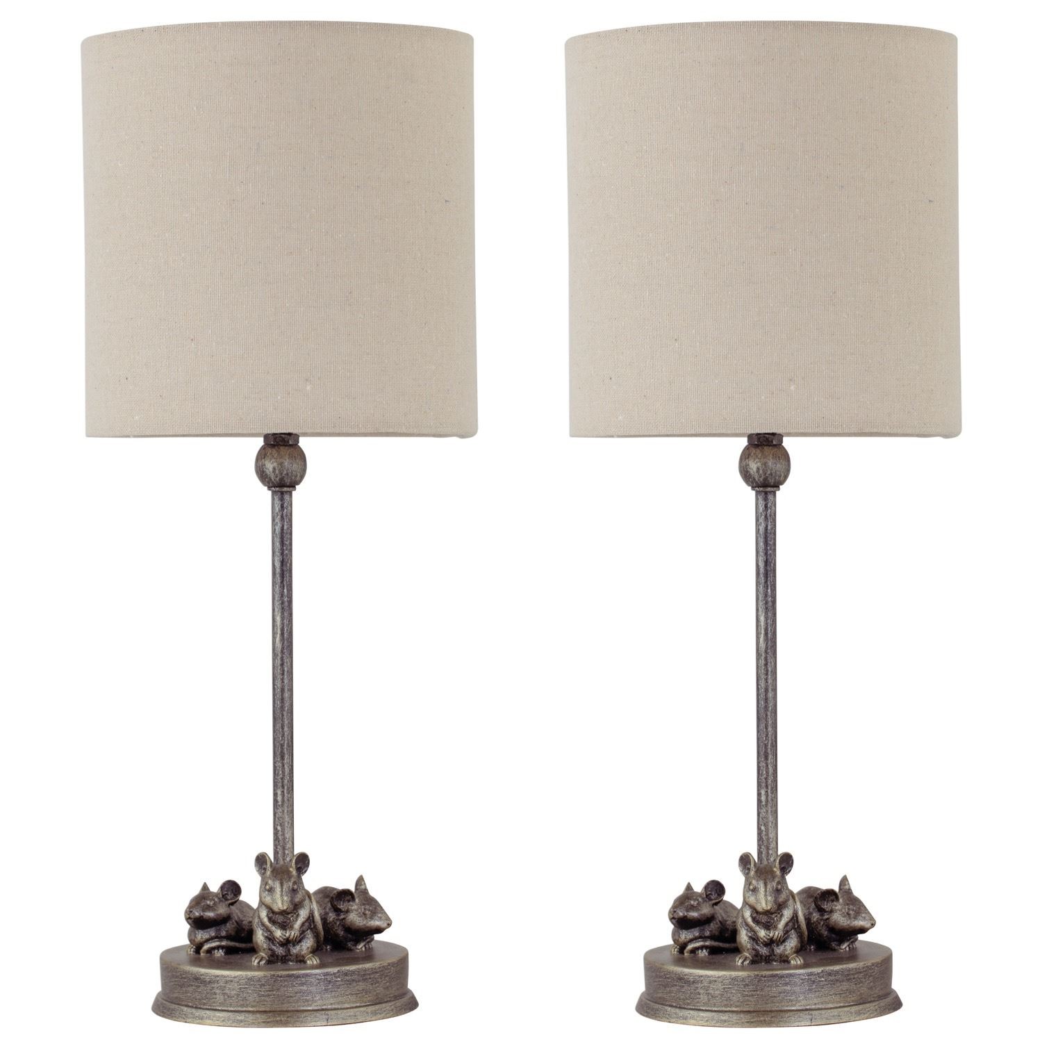 Set of 2 Antique Mouse Table Lamp Bedside Lights Retro Animal Bedroom Light