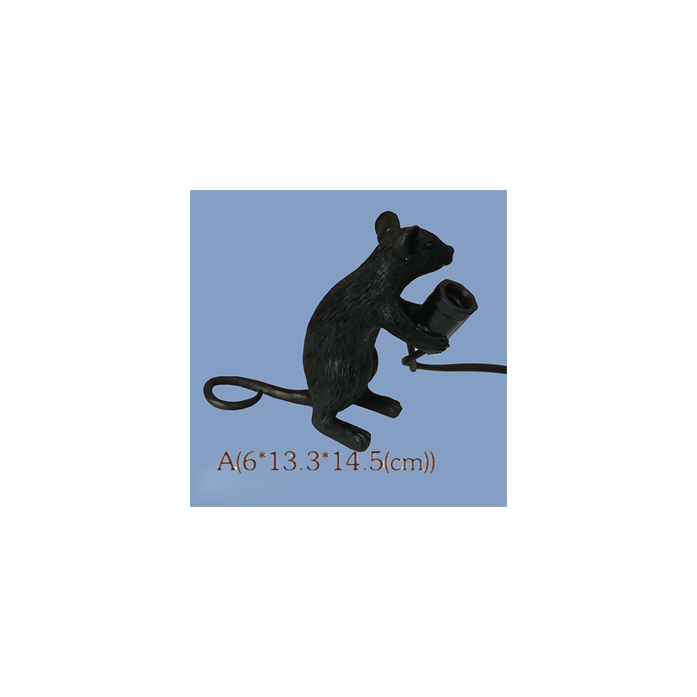(Black sitting mouse, AU Plug) Nordic Cartoon Mouse Lamp, Desk Lamp, Living Room, Dining Room, Bedroom, Clothing Store, Resin Ornament, Bedside Decora