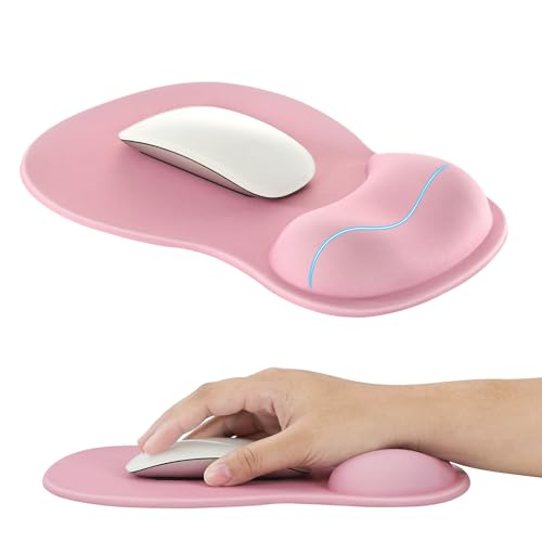 EooCoo Gel Mouse Mat with Wrist Support, Ergonomic Mouse Pad with Wrist Rest Support and Non-Slip PU Base, Durable, Washable, Matt Mousepad Desk Accessories for PC Laptop Computer Mice - Pink
