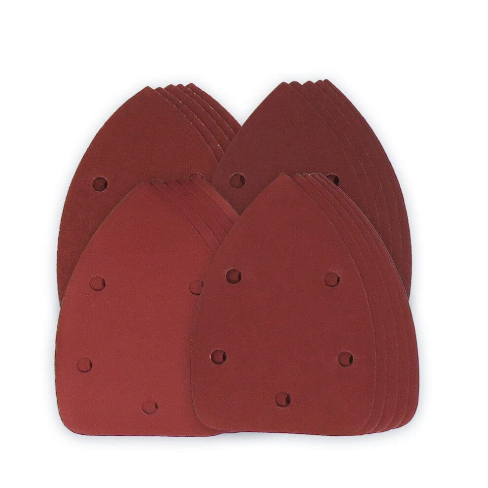 80PCS Mouse Detail Sander Sandpaper Palm Mouse Sander Pads 140x98mm 6-Hole Hook and Loop Triangle Sandpaper 40/60/80/100/120/180/240/320/400/800 Grit