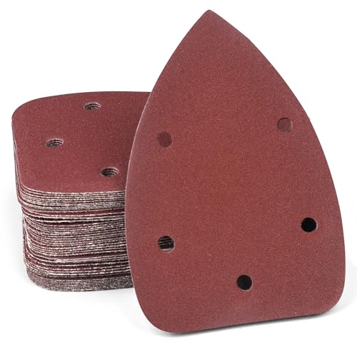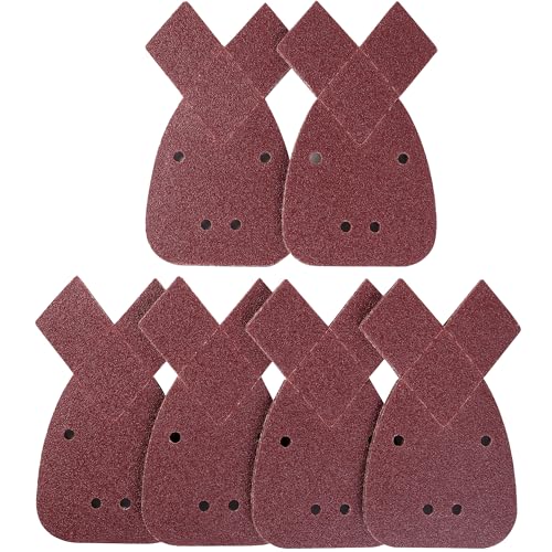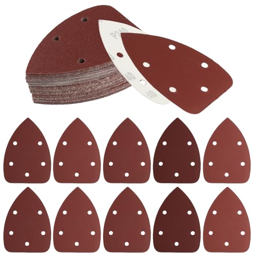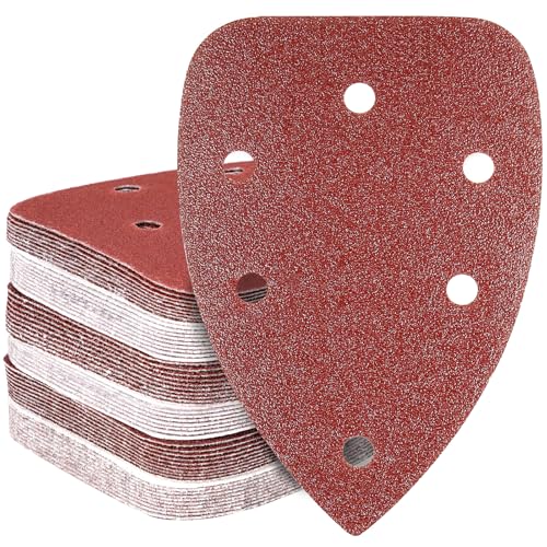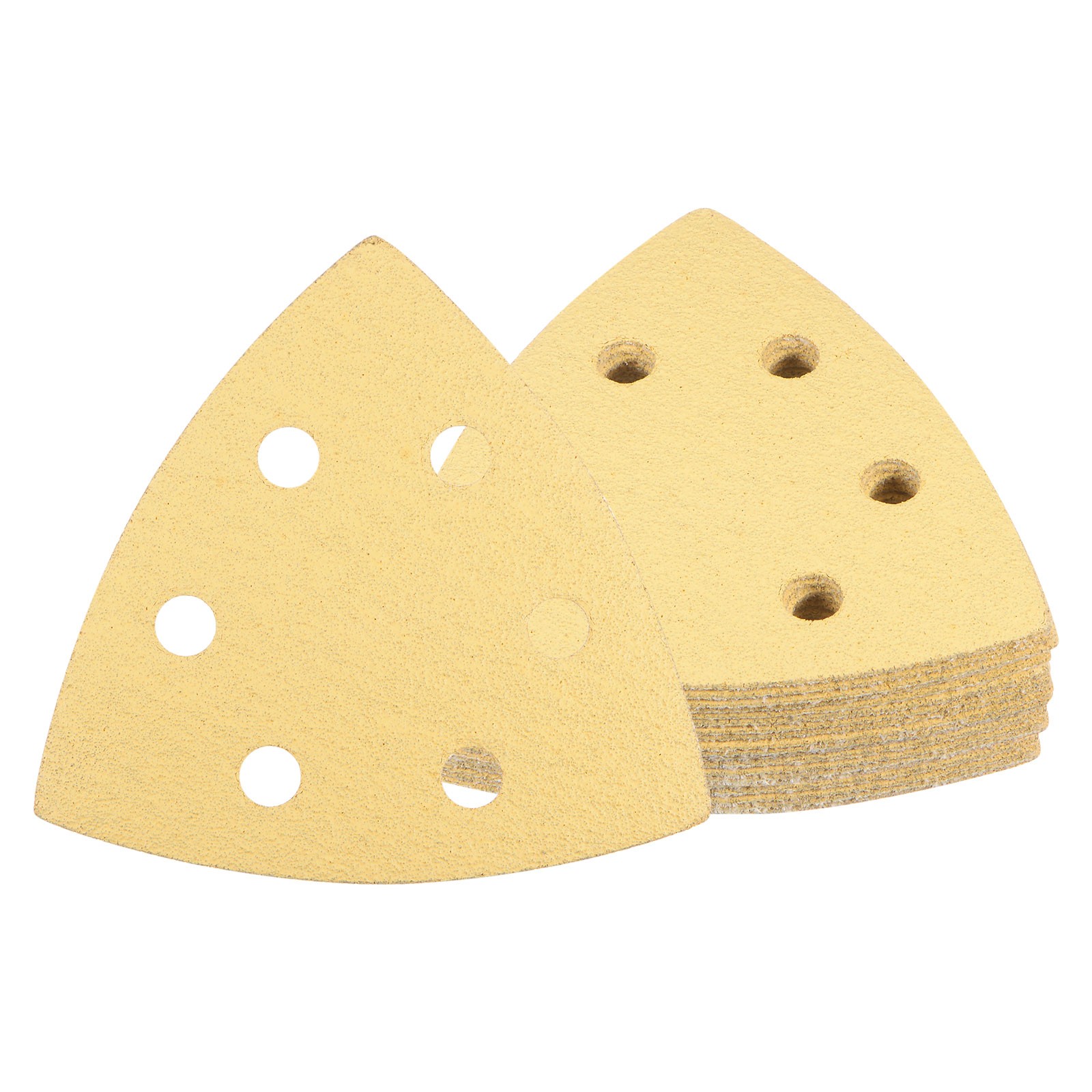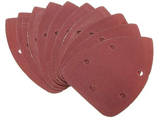 TOOLSTAR Mouse Sander Pads, 140 * 140 * 98mm 6-Hole 100 Grits Mouse Detail Sander Triangle Sanding Papers Sandpaper Sanding Sheets Black and Decker Palm Sander All Grit (10pcs)