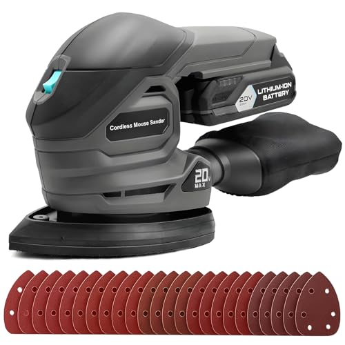 BLUEMARS 20V Cordless Mouse Sander, Mini Handheld Sander for Wood,Drywall,Floor, 20Pcs Sandpapers, 12000 RPM Detail Sanders with Dust Collection Bag, 2.0AH Battery and Charger Included
