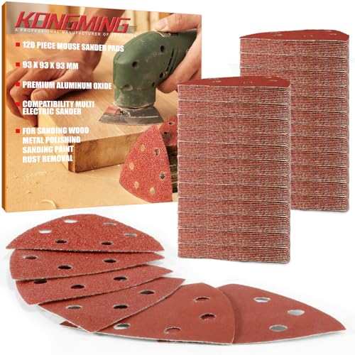 KONGMING 120 PCS Mouse Sander Pads Grit 40 60 80 120 240 400 Sanding Pads 6 Hole Hook and Loop for Multi Electric Sander