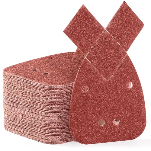 60PCS Mouse Sanding Pads, Mouse Sander Pads P120 Grits,Multi Tool Sanding Pads,5 Holes Triangle Sandpaper for Mouse Sander Pads