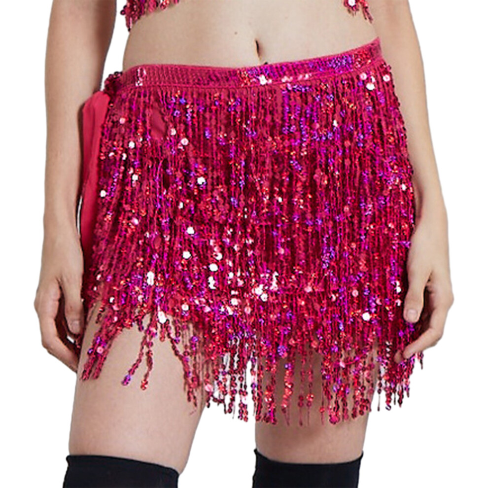 (Rose Red) Move Freely Belly Dance Mini Skirt Designed For Movement Universal Fit