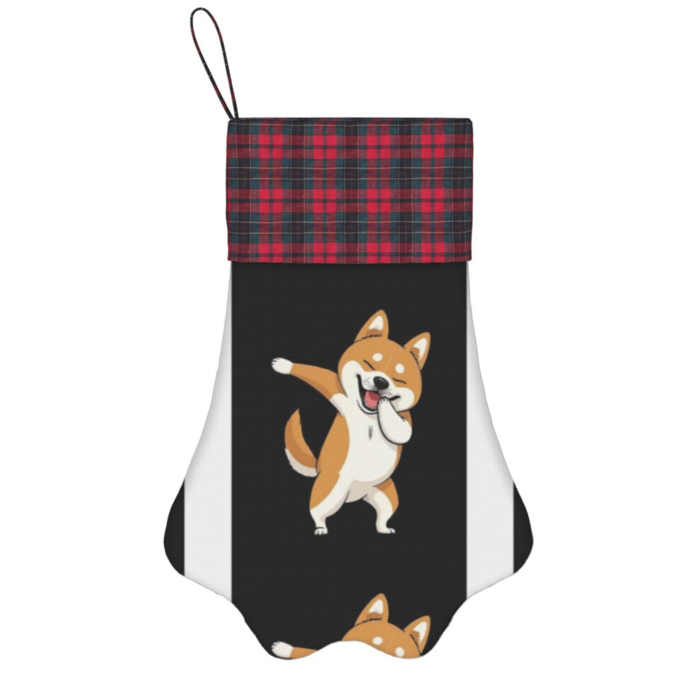 (Shiba Inu Dabbing Dog Dab Dance Move=7375) Paw Christmas Stockings Buffalo Tartan Plaid for Cats Dogs Pet Hanging Xmas Tree Decorations