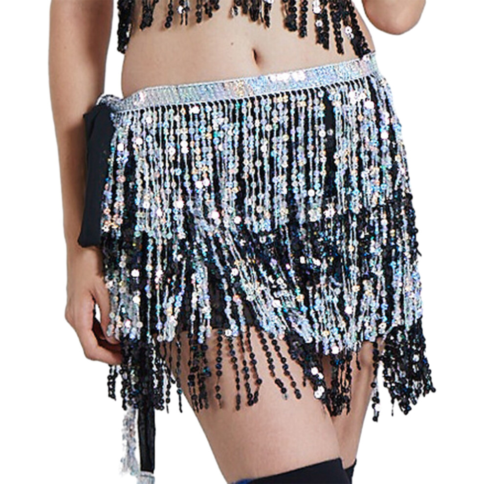 (Silver black) Move Freely Belly Dance Mini Skirt Designed For Movement Universal Fit