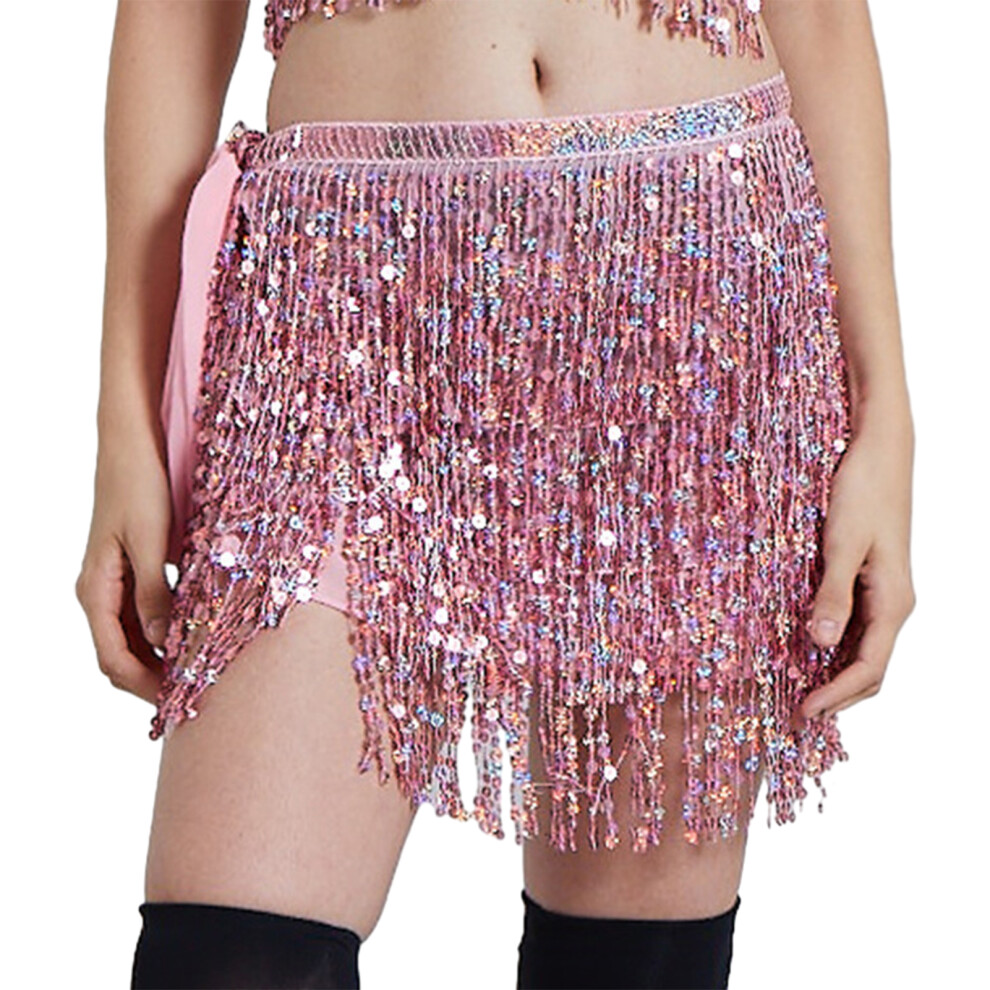 (Pink) Move Freely Belly Dance Mini Skirt Designed For Movement Universal Fit