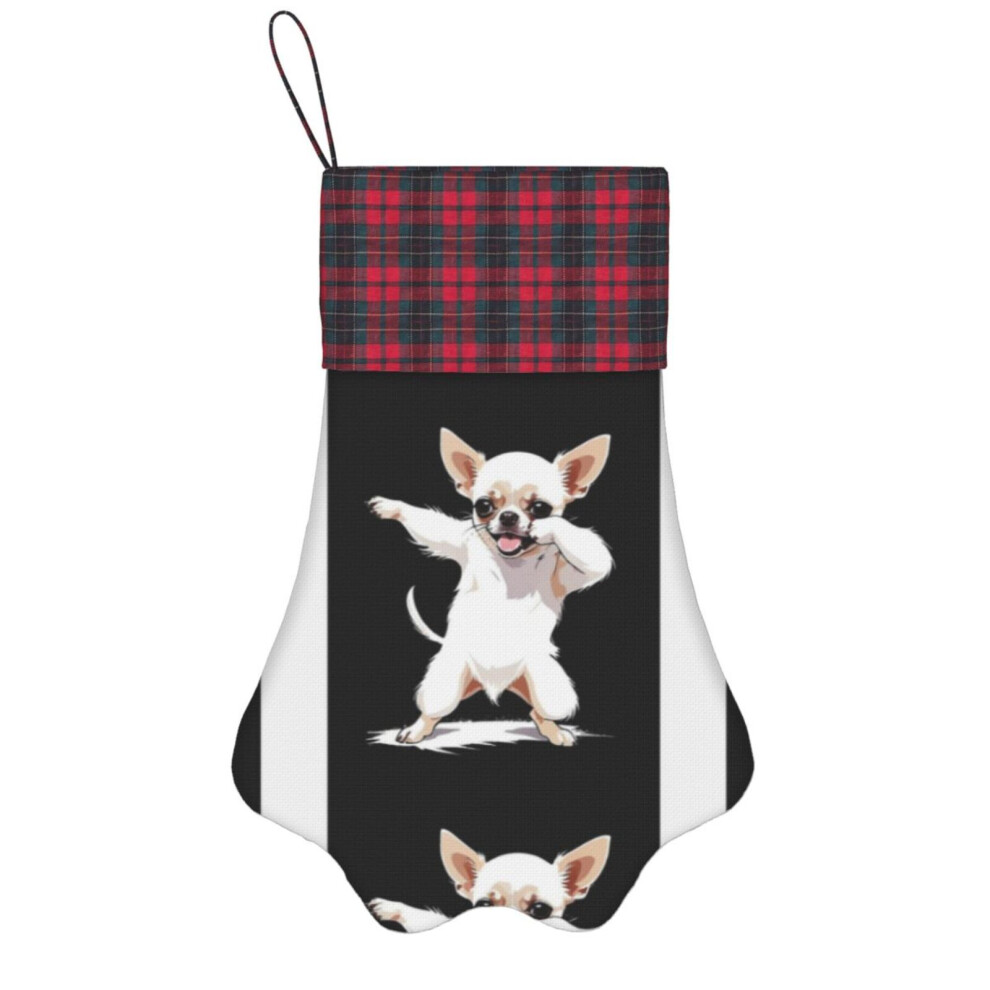 (Chihuahua Inu Dabbing Dog Dab Dance Move=8604) Paw Christmas Stockings Buffalo Tartan Plaid for Cats Dogs Pet Hanging Xmas Tree Decorations