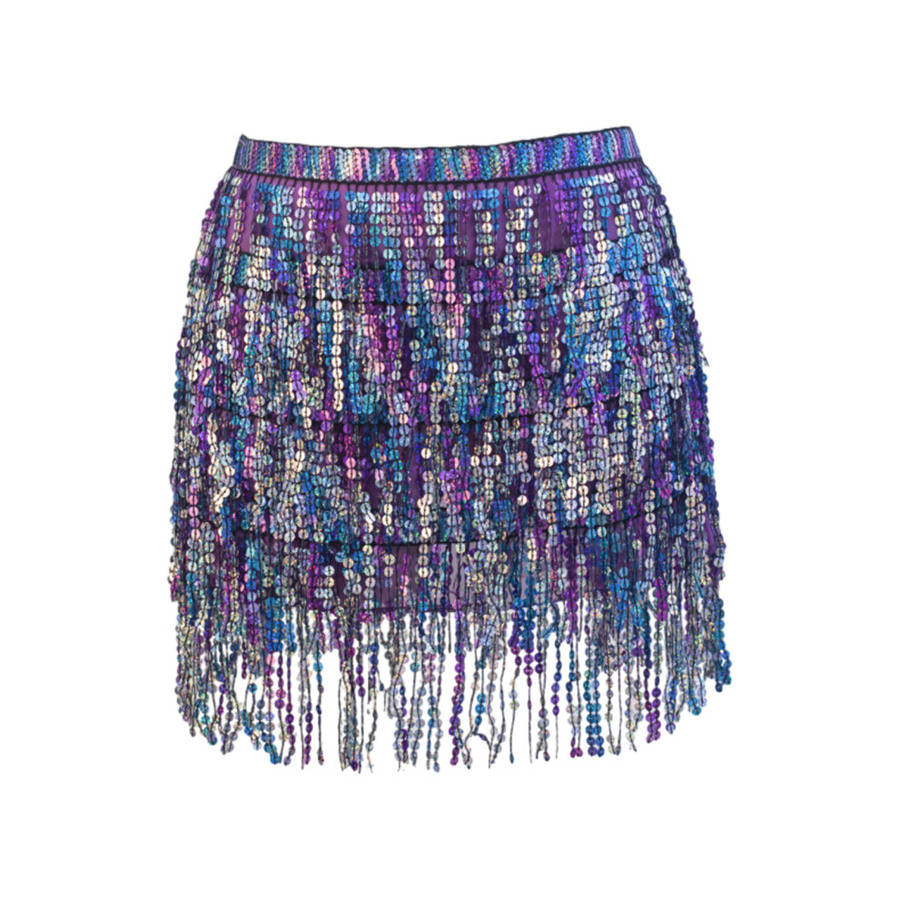 (Purple silver color) Move Freely Belly Dance Mini Skirt Designed For Movement Universal Fit