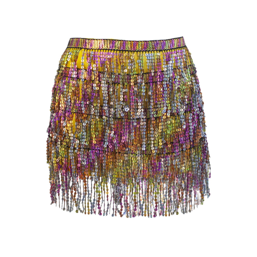 (Gold on yellow) Move Freely Belly Dance Mini Skirt Designed For Movement Universal Fit