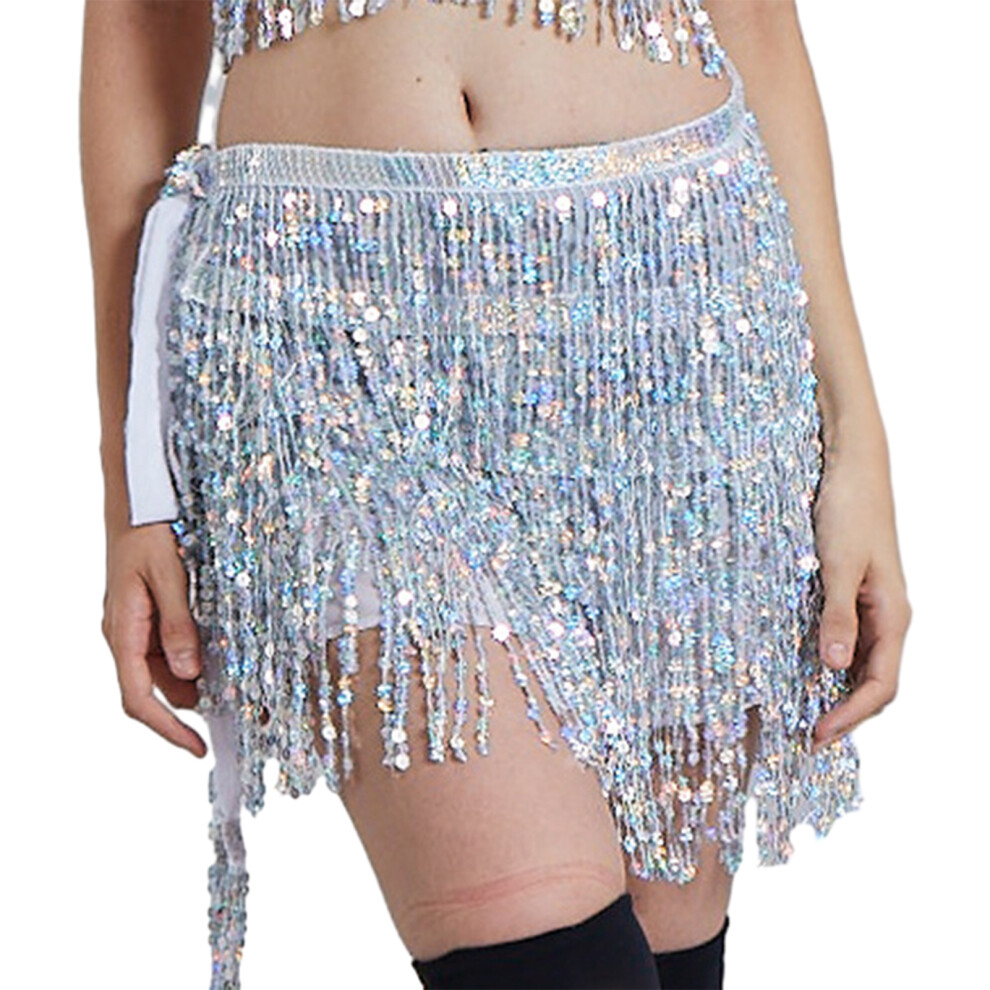 (Silver white) Move Freely Belly Dance Mini Skirt Designed For Movement Universal Fit