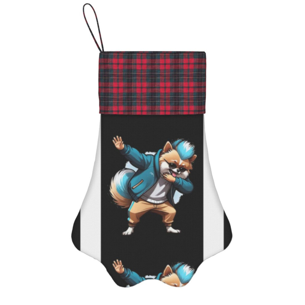 (Pomeranian Dabbing Dog Dab Dance Move=7392) Paw Christmas Stockings Buffalo Tartan Plaid for Cats Dogs Pet Hanging Xmas Tree Decorations