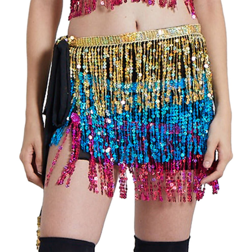 (Gold blue red) Move Freely Belly Dance Mini Skirt Designed For Movement Universal Fit