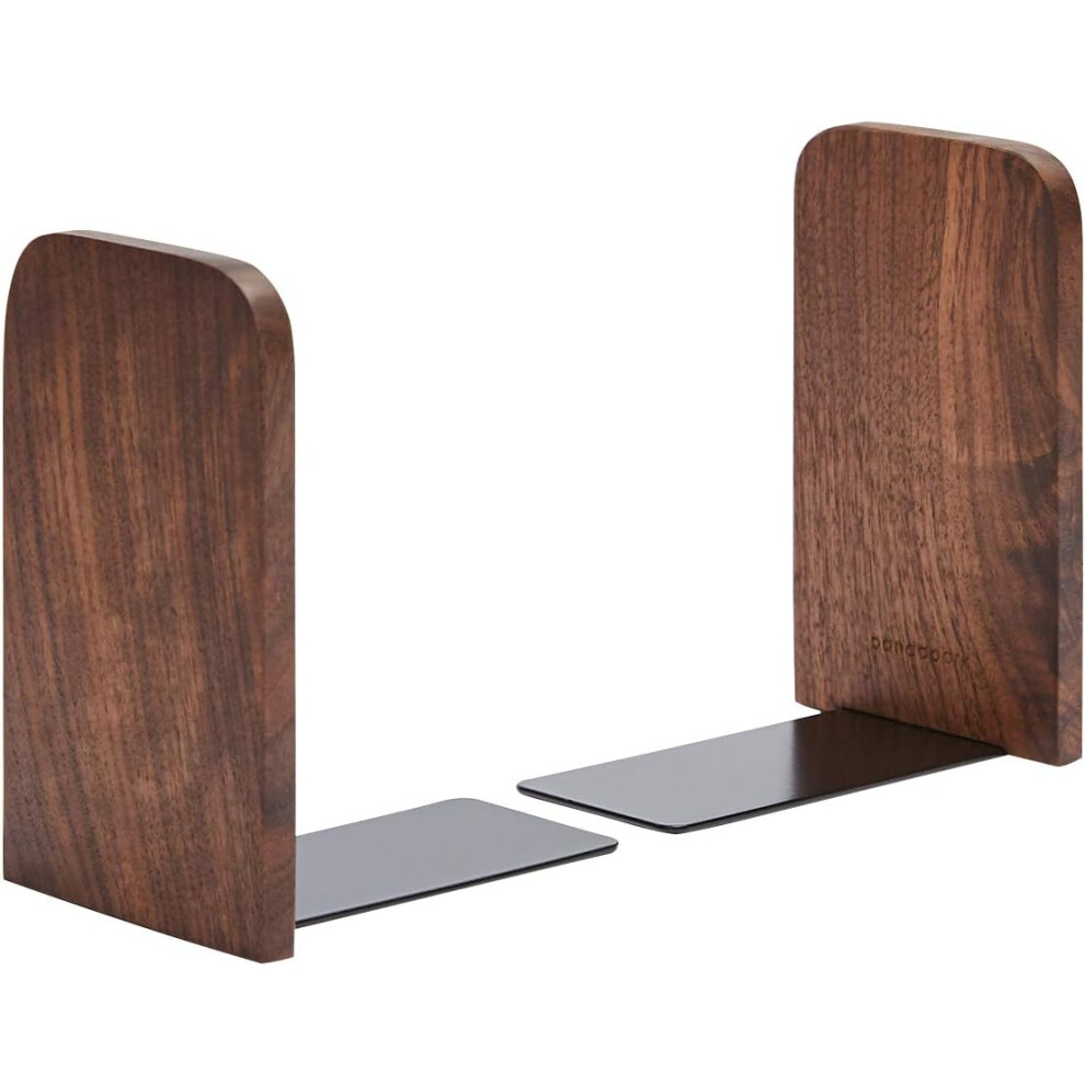 Heavy Sturdy Metal Book Organizer, Good Slip Resistance Walnut Book Ends 4 Movie Collection DVDs Documents Video Games Non-Slip Base Design In Office